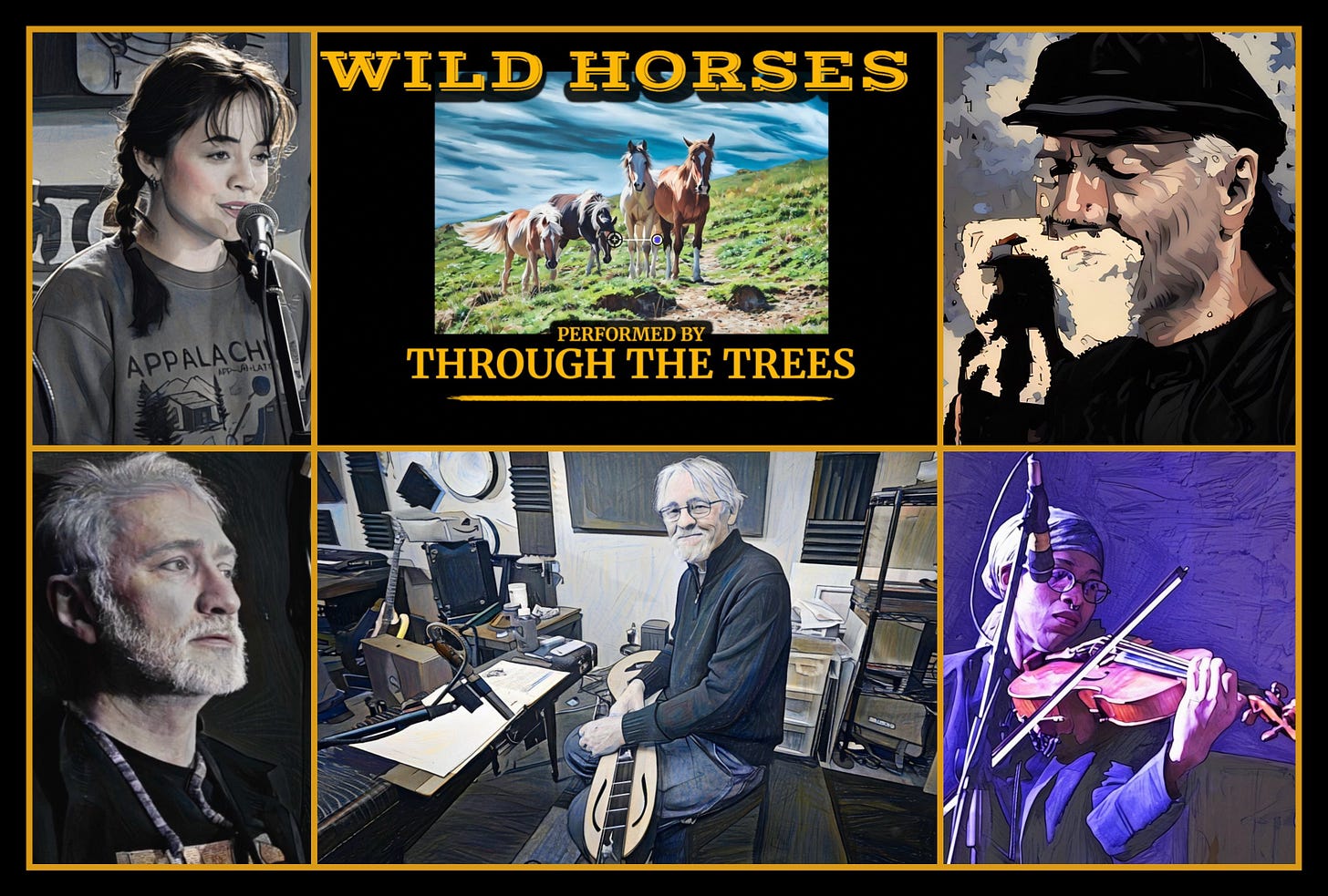 PHOTOGRAPHY | Artified photos of band and guests artists are from ‘Wild Horses’ recording session at Hear! Here Studios and live concerts. PHOTO CREDITS: Logan Gambill; Jozlend Tucker; Douglas John Imbrogno; and Randy Melton.